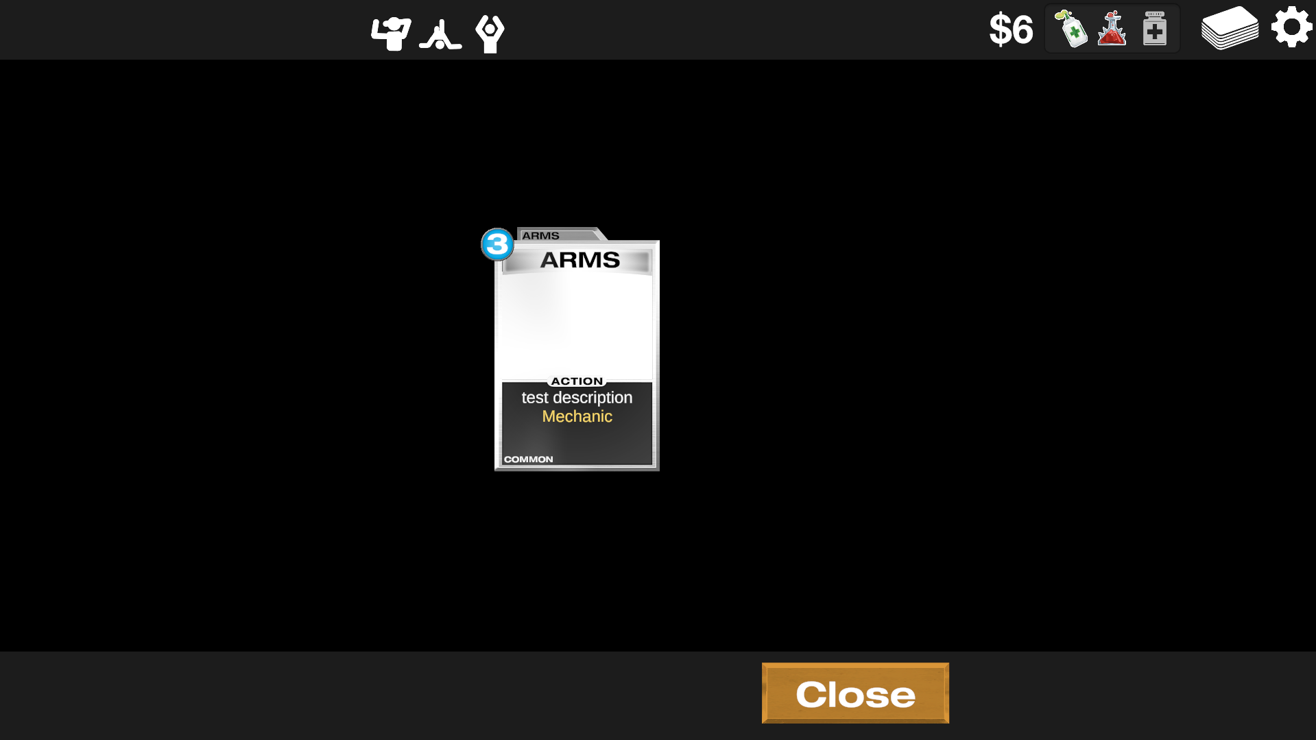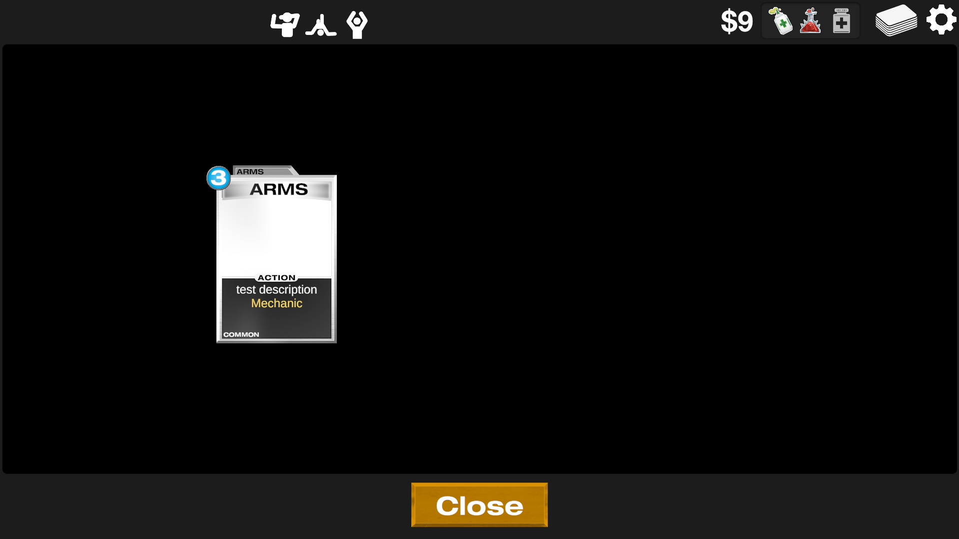 While trying to make a one hand deck that i would cycle, weird "arms" card with bugged description appeared and broke the game.